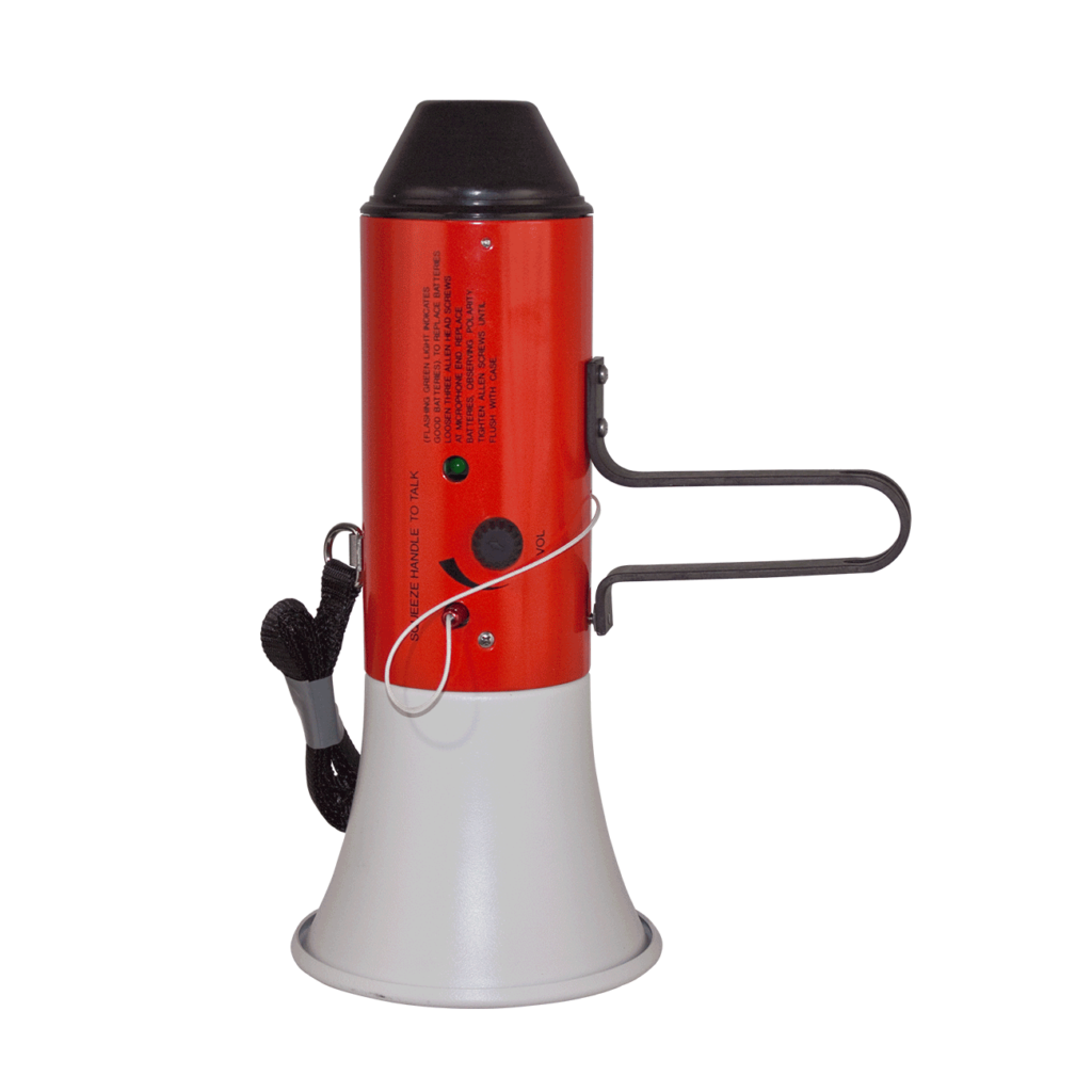 The ACR EM-1A, EM-2BA, and EM-1D Portable Safety Megaphones have been designed to minimize acoustic feedback that results in whistling and other similar sounds. Each megaphone has a 90° sound projection angle so that people in the megaphone’s immediate vicinity, as well as those in the rear sections of an aircraft, can hear the message. Plus, the amplifier frequency band-pass has been selected to produce a crisp, clear reproduction of voice signals. Specific attention has been given to the physical size of the megaphone so that each model can be used effectively in a crowded environment.