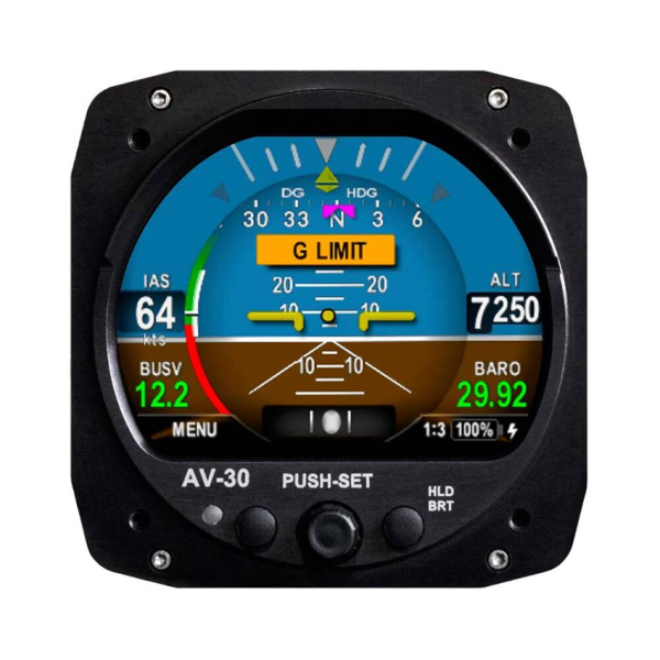 uAvionix AV-30-C is a highly capable, fully digital, multi-mode instrument that mounts in the legacy 3⅛ inch round instrument panel cutout. The AV-30-C can be configured as either an Attitude Indicator (AI) or a Direction Indicator (DG), contains an internal battery, and allows for a wide variety of pilot customization.