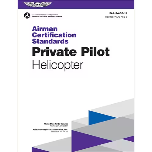This Federal Aviation Administration (FAA) Private Pilot Rotorcraft Helicopter Airman Certification Standards (ACS) softcover book (ACS-15) supersedes the Practical Test