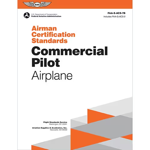 This Federal Aviation Administration (FAA) Commercial Pilot Airplane Airman Certification Standards softcover book (ACS-7B) supersedes the previous edition (ACS-7A), and