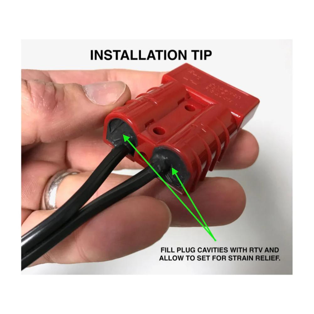 IMPORTANT: This harness is designed only for maintenance battery charging, not for supplying ground power for airframe operations. Disconnect the charger before turning on airframe electrical power. Reconnect the charger after turning airframe electrical power off to recharge and then maintain/desulfate the battery.