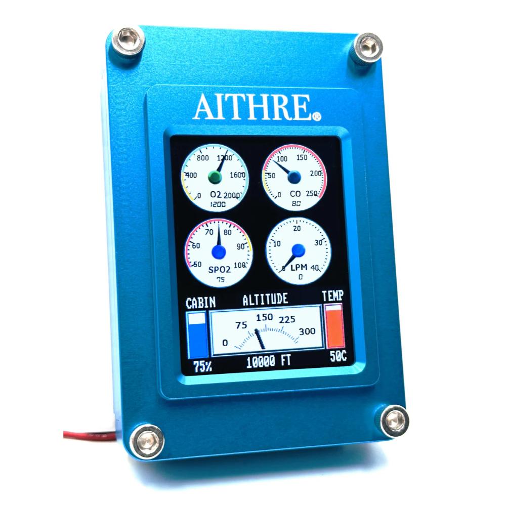 The HealthView works as a standalone device for cabin pressure altitude, using an internal barometric pressure sensor. But, the real power lies in the HealthView’s ability to dynamically expand to feature any available Aithre device, wirelessly and with or without use of the popular Aithre Connect iOS app.  The HealthView is compatible with all Aithre devices, including the Shield series of carbon monoxide detectors, the Illyrian oximeter, the Meso oxygen pressure, the Metis wingtip temperature/dewpoint sensor, and the AVI and Turbo oxygen systems.