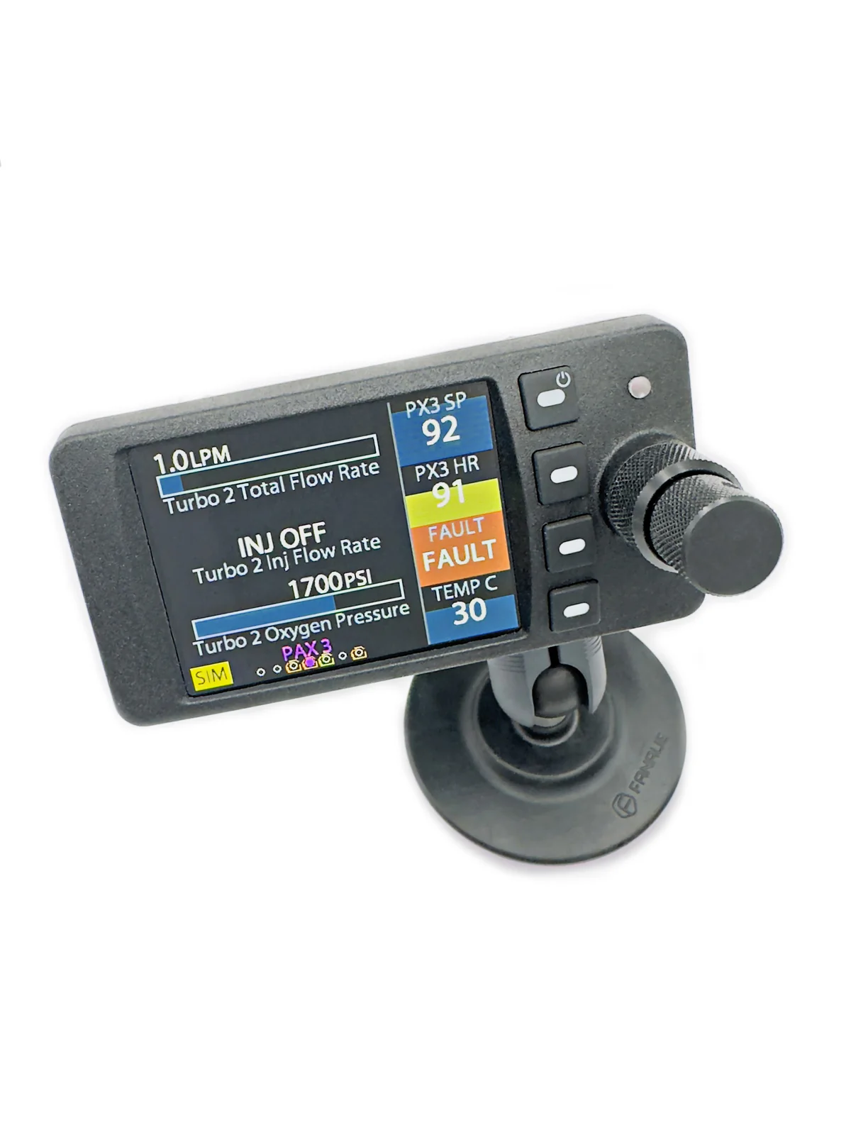 The HealthView II with the ATD features over 60 customizable color health fields across 9 custom pages with per station control of oxygen dosing and Turbo injection control. All Aithre devices and their associated data will display either via BLE or the serial communication channels, including Shield, Metis, Avi, Turbo, and Illyrian products.
