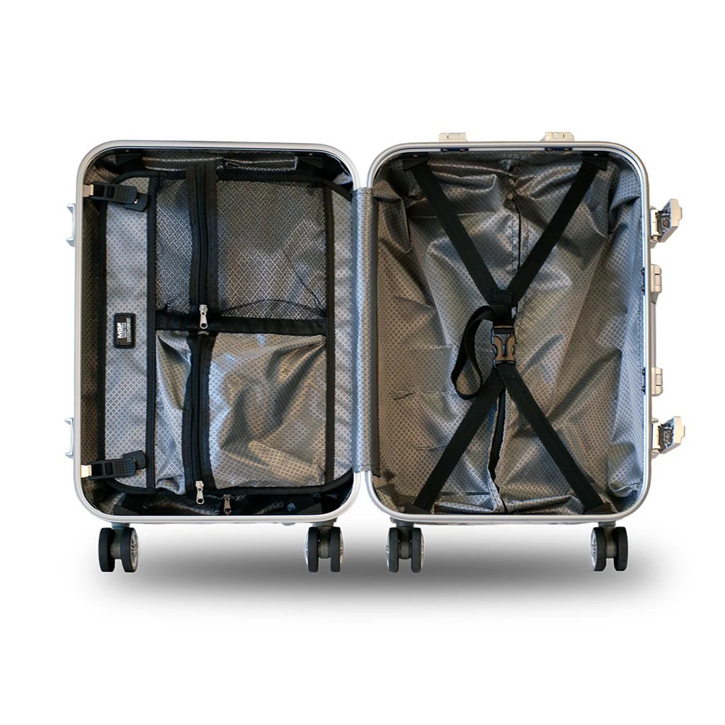 The Aviator Pro Fusion 20 integrates an aluminum frame with a polycarbonate shell that makes the Fusion 20 the choice carry-on for any type of travel. Beautifully designed, this luggage includes a TSA approved locking system, quad wheels systems, and aviation-inspired exterior and interior. Mesh pockets inside allows for organized packing alongside compressions straps for secure protection for all your travel needs.