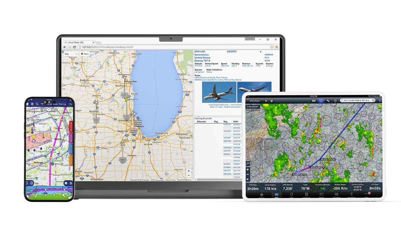 Offers both wireless connectivity for Electronic Flight Bag (EFB) applications and a USB connection for PC-based platforms like Virtual Radar Server.