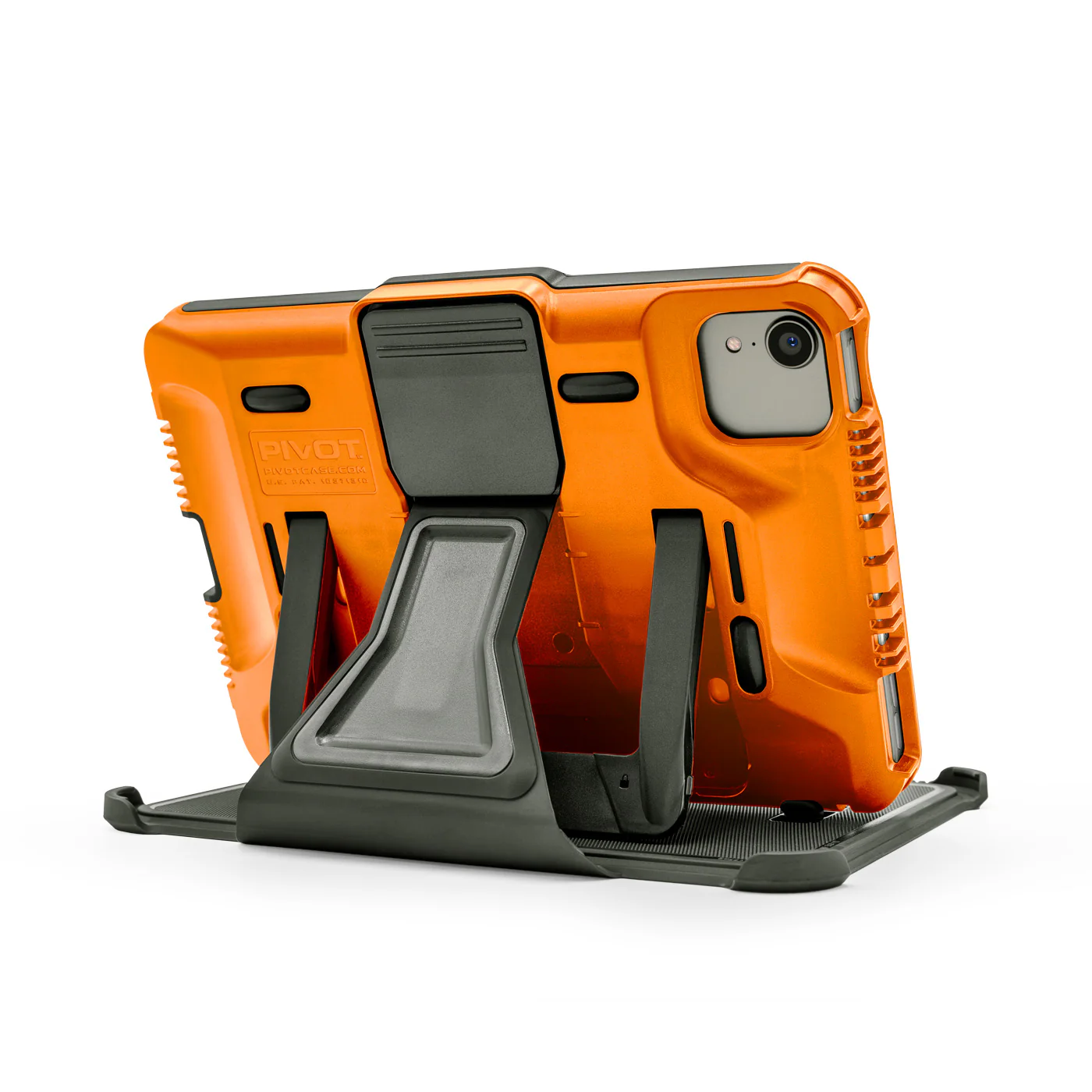 The PIVOT A35A is the newest case from PIVOT, with updated design to protect the iPad Mini (6th gen.) and iPad Mini (A17 Pro). Connect the A35A case quickly and securely to mounts and accessories using the patented PIVOT universal mounting system. Be confident with excellent 360-degree protection from drops, impacts, and scratches. The upgraded PIVOT Folio Cover provides full-coverage screen protection when in transit and increased impact resistance on corners and edges. Additionally, the Folio Cover offers quick-viewing support in landscape orientation with a selection of viewing positions. Use the Folio Cover in combination with the PIVOT Kickstand for viewing with enhanced stability and a wide range of adjustable viewing angles. The updated PIVOT Kickstand is thicker and reinforced with internal ribs and locking tabs for increased strength and offers 120-degrees of adjustability in landscape orientation, as well as table-top viewing in both landscape and portrait orientation.
