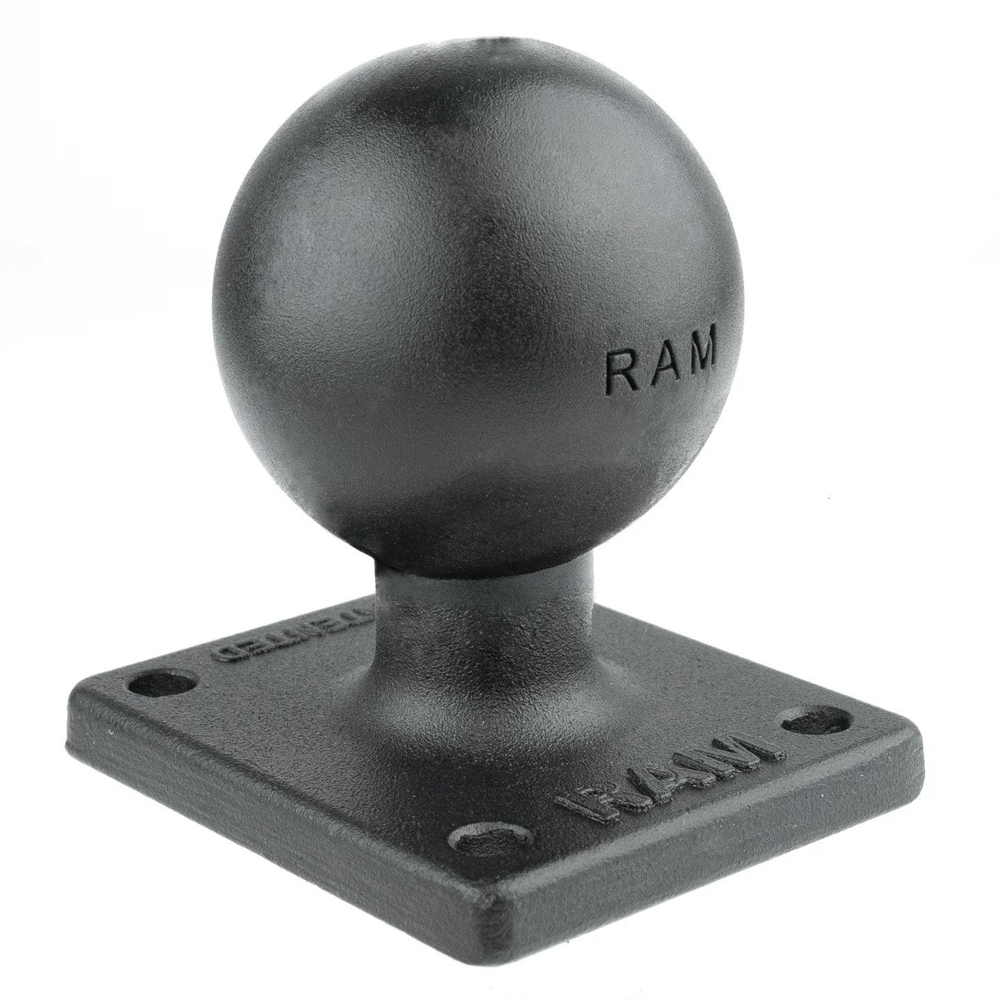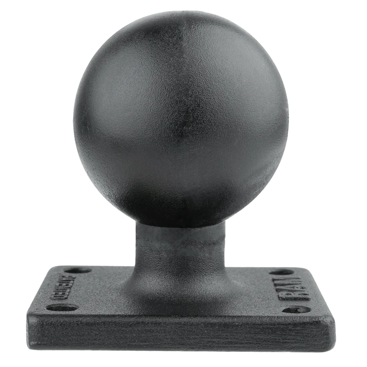 The RAM-347U consists of a 1.5″ diameter rubber ball connected at right angles to a 2″ x 1.7″ rectangle base. The base has four pre-drilled holes at each corner, making the universal AMPS hole pattern.