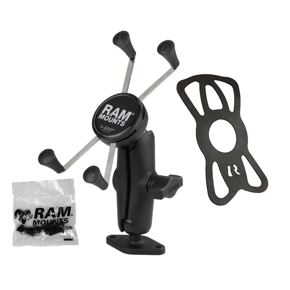 The popular spring-loaded RAM® X-Grip® phone holder features an ‘X’ design that expands and contracts to provide a perfect fit for your device – even if it’s in a case. This large version of the RAM® X-Grip® fits phones ranging from 1.75″ to 4.5″ in width and keeps your device completely functional and accessible. The included diamond ball base features the industry-standard AMPS hole pattern, while RAM® ball and socket technology allows for near-infinite adjustability to achieve the ideal viewing angle – and helps to extend the life of your phone by providing shock and vibration damping. For outdoor applications – like being used as a motorcycle phone mount – the RAM® X-Grip® includes a device tether that is recommended for added security and peace of mind.