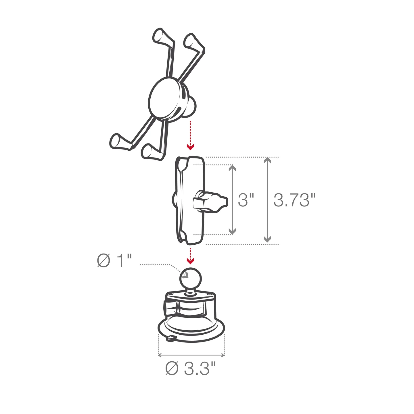 Ideal for vehicle windshields, the RAM-B-166-UN10U consists of a 3.3″ diameter RAM® Twist-Lock™ suction cup base, medium length double socket arm, and the popular spring-loaded RAM® X-Grip® large phone holder. The RAM® X-Grip® features an ‘X’ design that expands and contracts to provide a perfect fit for your device – even if it’s in a case. Made of powder-coated, marine-grade aluminum, stainless steel components, and high-strength composite, this large version of the RAM® X-Grip® fits phones ranging from 1.75″ to 4.5″ in width and keeps your device completely functional and accessible. RAM® ball and socket technology allows for near-infinite adjustability to achieve the ideal viewing angle – while also extending the life of your phone by providing shock and vibration damping. For outdoor applications, the RAM® X-Grip® includes a device tether that is recommended for added security and peace of mind.