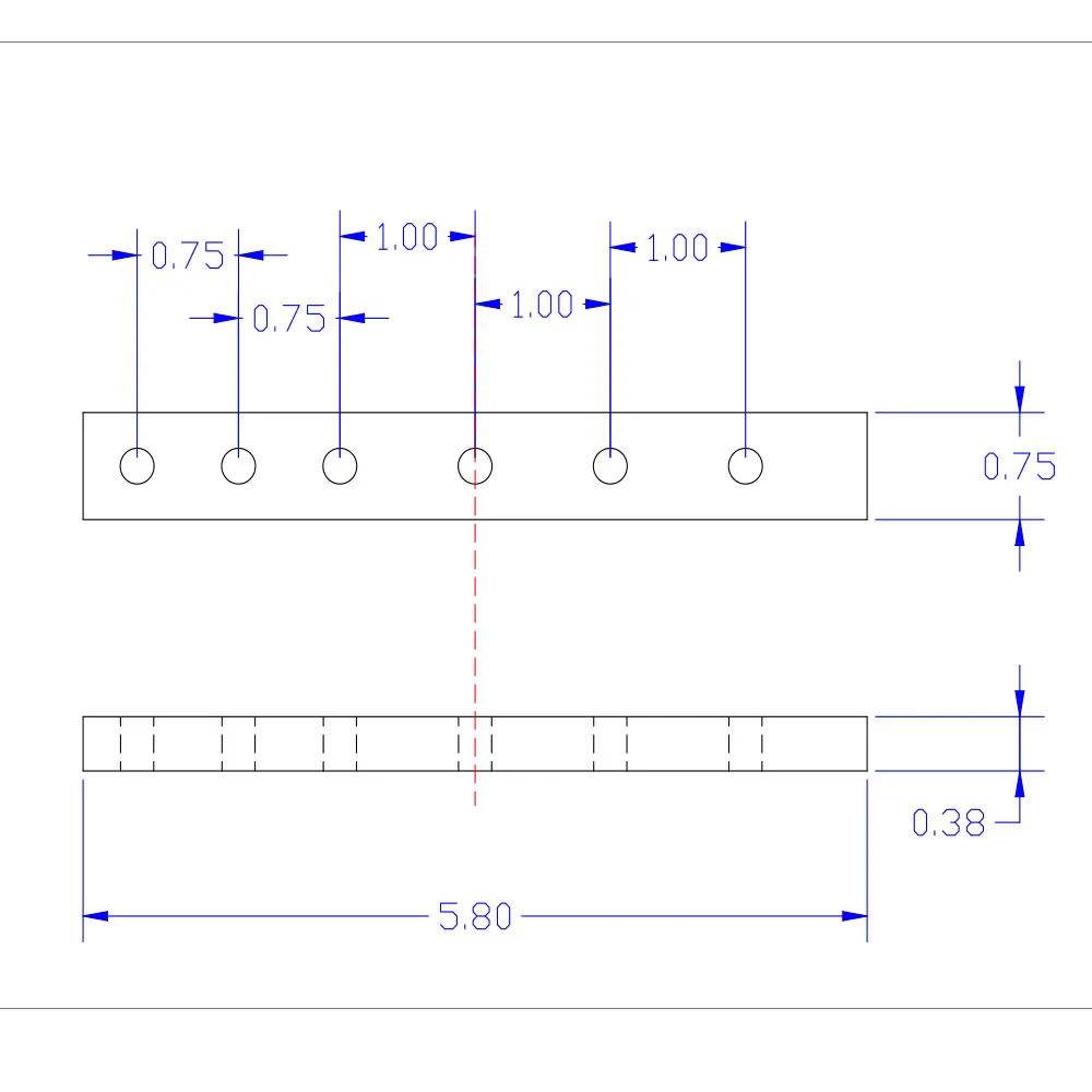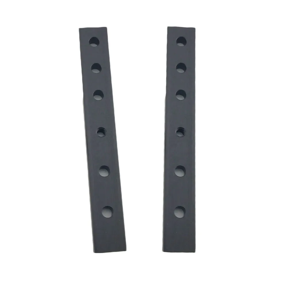 Two aluminum clamp bars. One bar has threaded 1/4-20″ holes and the other has drilled holes.