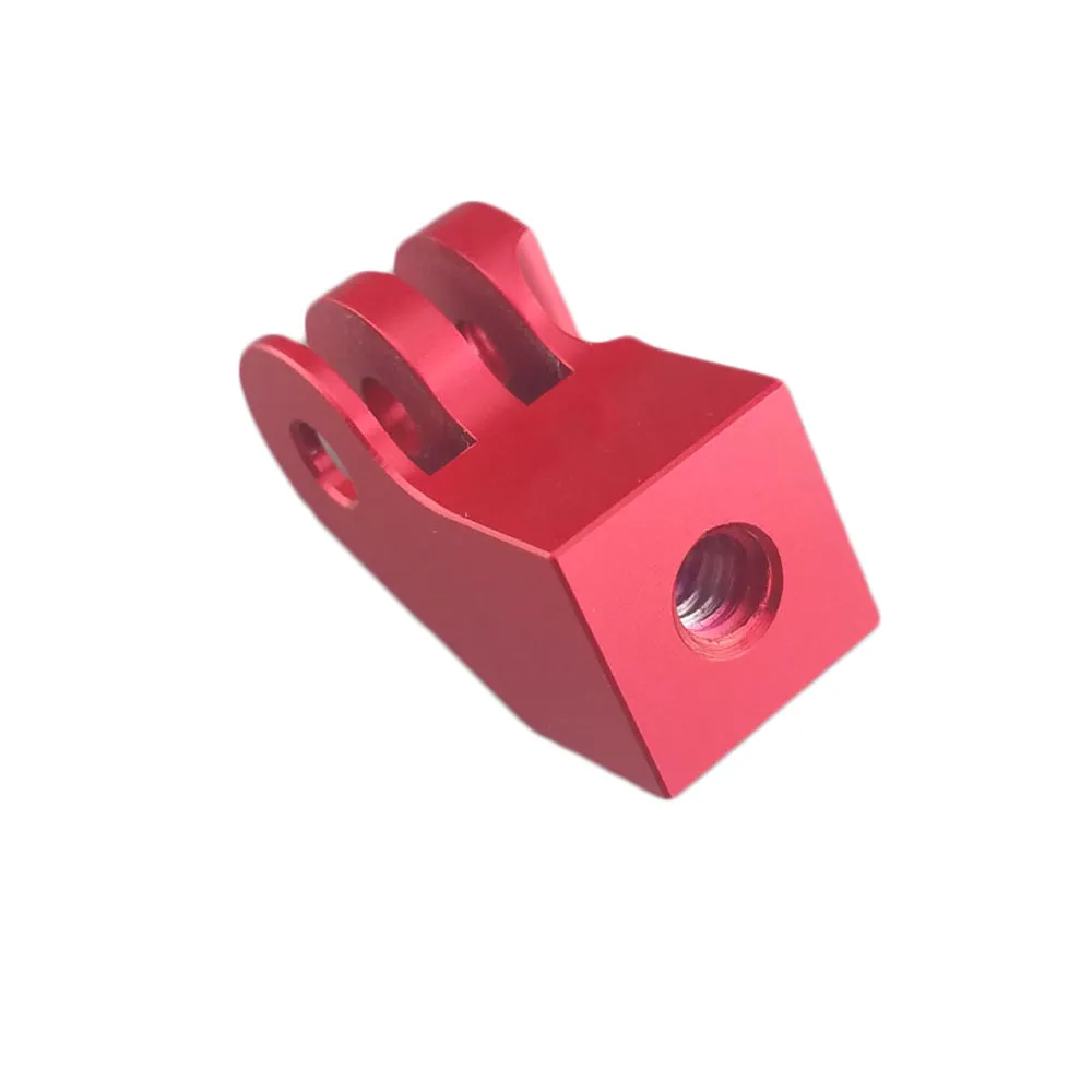 This machined aluminum GoPro adapter uniquely allows over 180 degrees of rotation on the mounting forks. The square design makes it easy to work with using tools. The base is centered with a standard 1/4-20″ threaded socket allowing you to use this adapter with any of your camera mounts.