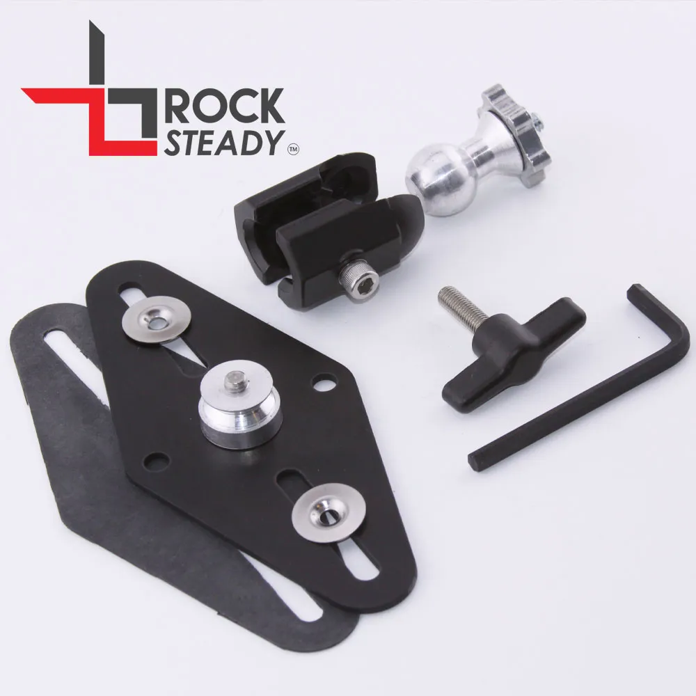 The Rock Steady ball mount is the durable and versatile low profile design that you have been looking for. This quality all metal mount will not move, bend, or fail, unlike plastic mounts. The knuckle clamp attaches to any Rock Steady base allowing 360 degrees of adjustment. The knuckle locks your camera into any position with a hex wrench, or by hand with an included T-handle screw. Buy multiple Rock Steady bases to add numerous quick change mounting locations at an affordable price. The standard 1/4-20 thread is compatible with any camera that has a threaded 1/4-20 attachment point.