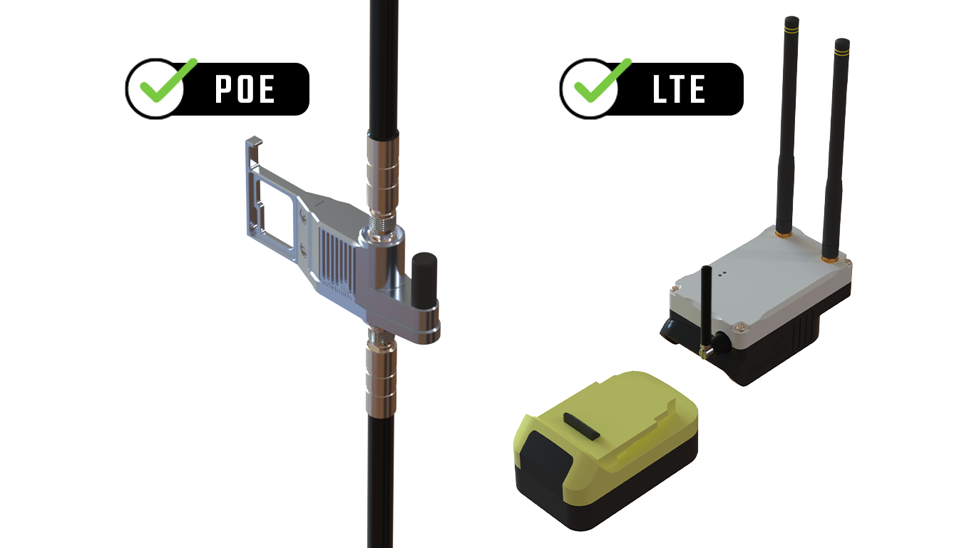 skyStation units offer flexibility in power sources, including Power-over-Ethernet (PoE) and mobile battery options with commercial off-the-shelf battery integration, reducing setup complexity and operational costs.