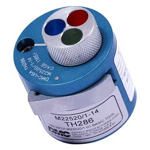 This turret head is used with the AF8, WA27F, and AFE8B tool frames and adapt the tool frames to a particular application. The data plate on each turret head designates which contacts the turret accommodates for its wire size and indicates selector position.