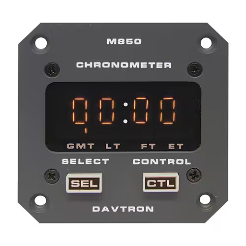 M850 Digital Clock Chronometer | 2-1/4in, 5V Orange Incandescent, Gray Faceplate, Learjet Dimming