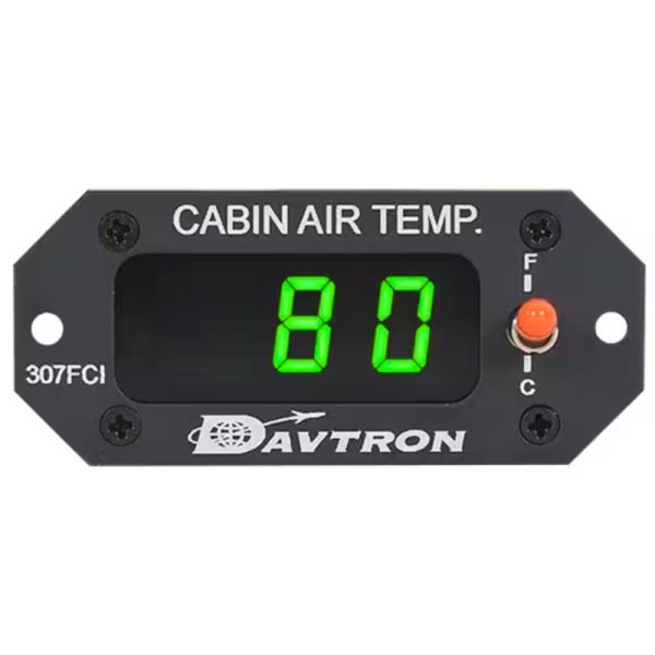 307FCI Digital OAT & Cabin Temperature Gauge | Centigrade, Green Display, Includes Digital Probe